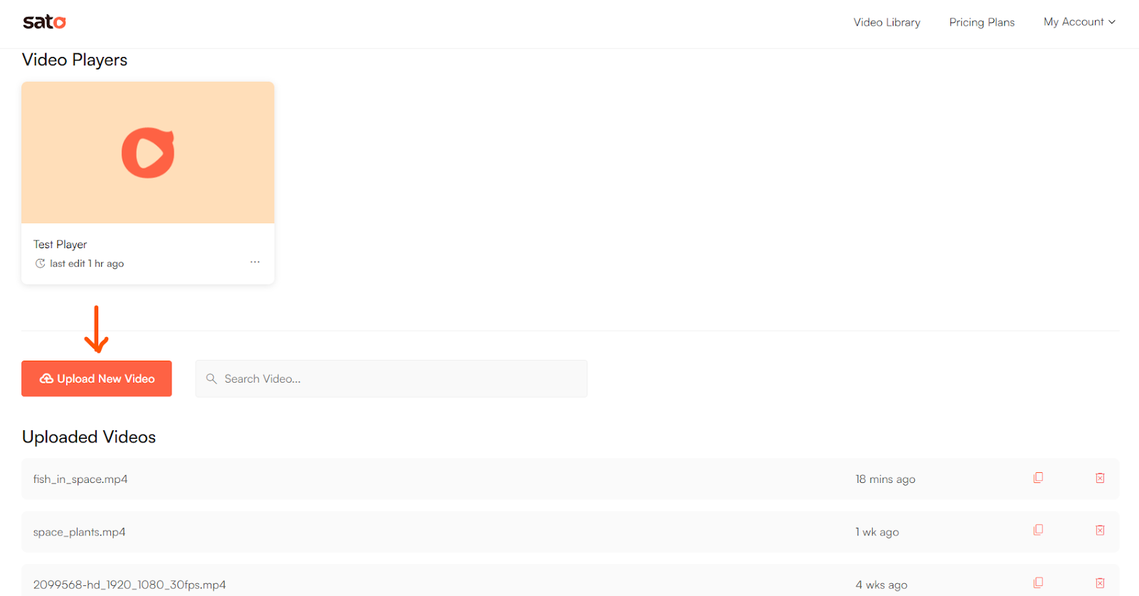 - The selected video will then be uploaded on your Sato video library and linked with the Sato video player you created
